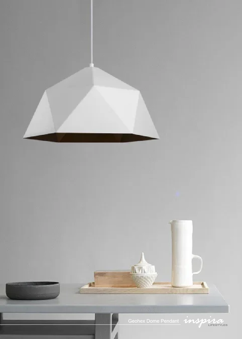 The Geohex Dome Pendant blends industrial character with sculptural geometry, creating a pendant light that commands attention without excess. Its faceted, dome-shaped form draws from geodesic and industrial design influences, giving the fixture a strong architectural presence. Finished in matte black or crisp white metal and paired with a copper-toned interior, Geohex introduces contrast, texture, and visual weight to interiors.