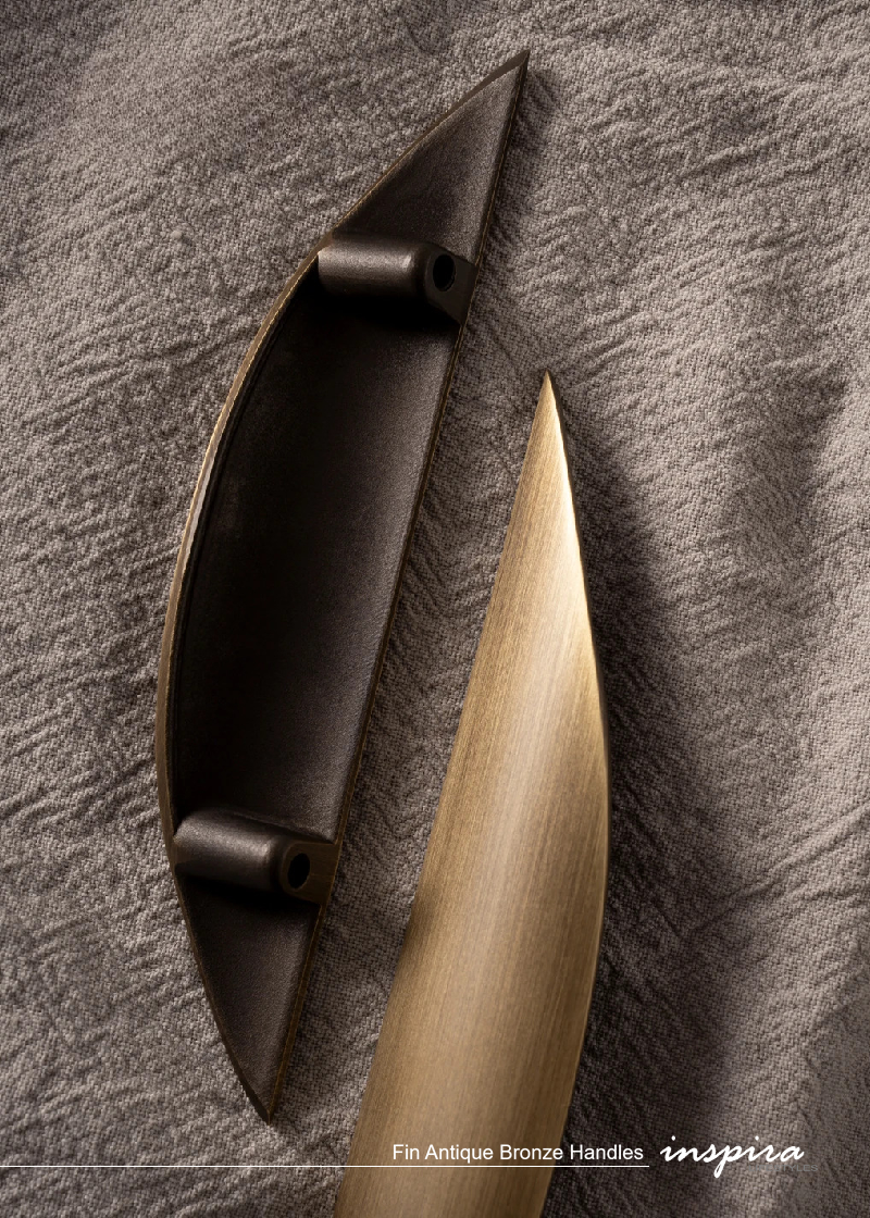 The Fin Antique Bronze Handle introduces sculptural fluidity through a softened, organic silhouette inspired by the natural curve of a fin. Its fluid form creates a refined architectural statement while maintaining a comfortable, ergonomic grip. The antique bronze finish adds depth and warmth, elevating cabinetry with distinctive style across contemporary and transitional interiors.