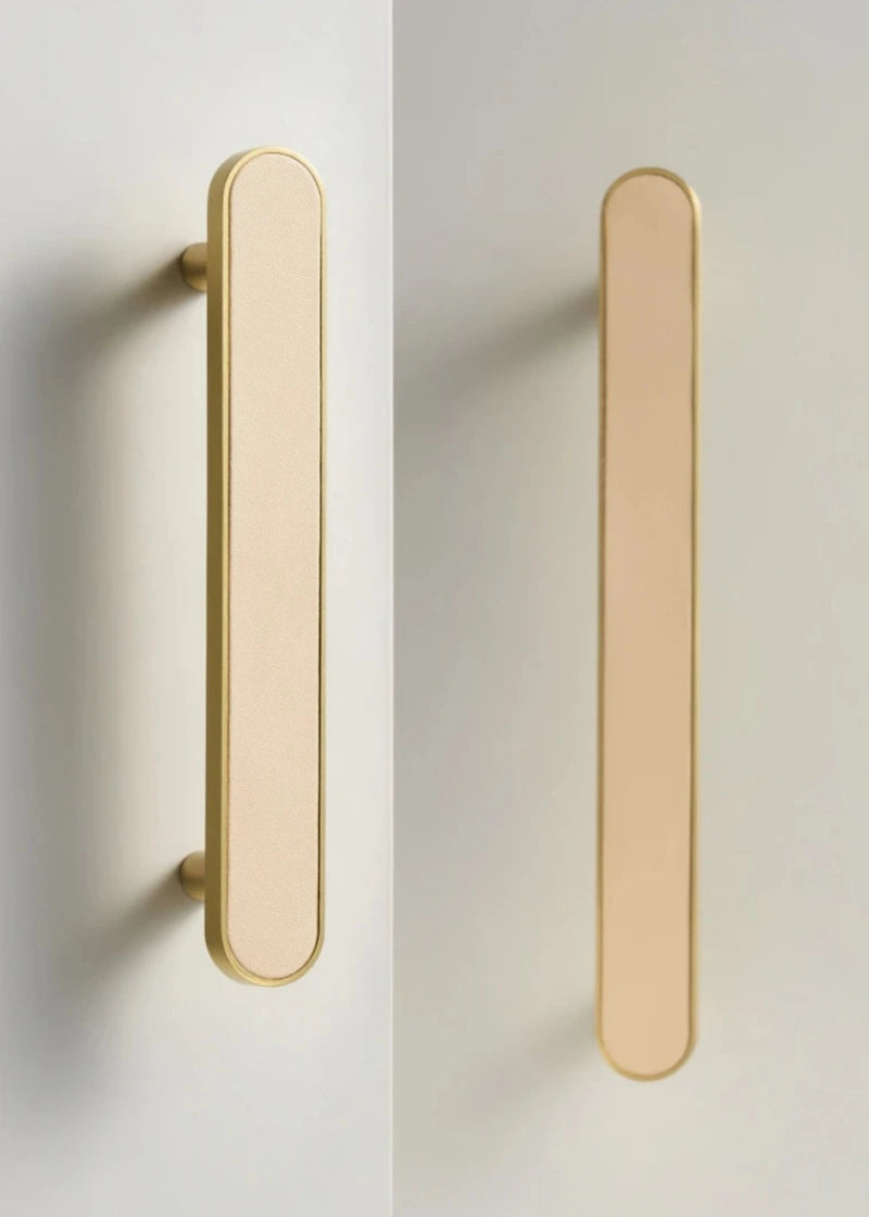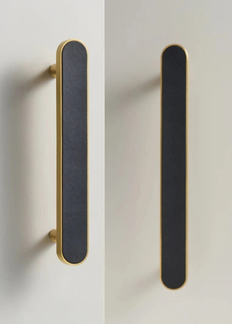 Introduce a touch of tailored sophistication with the Sarto Leather Handles — a collection that blends refined craftsmanship with tactile luxury. Styled in genuine leather and finished in brushed brass, each handle brings warmth, texture, and visual depth to cabinetry and furniture alike. Available in black, orange, beige, and khaki leather tones, the Sarto collection pairs effortlessly with both modern and post-modern interiors, offering a bespoke alternative to conventional hardware. The rounded edges and soft contours create a sense of understated elegance, while the natural material adds character and authenticity. Ideal for kitchens, wardrobes, or office interiors where detail and design make a lasting impression.