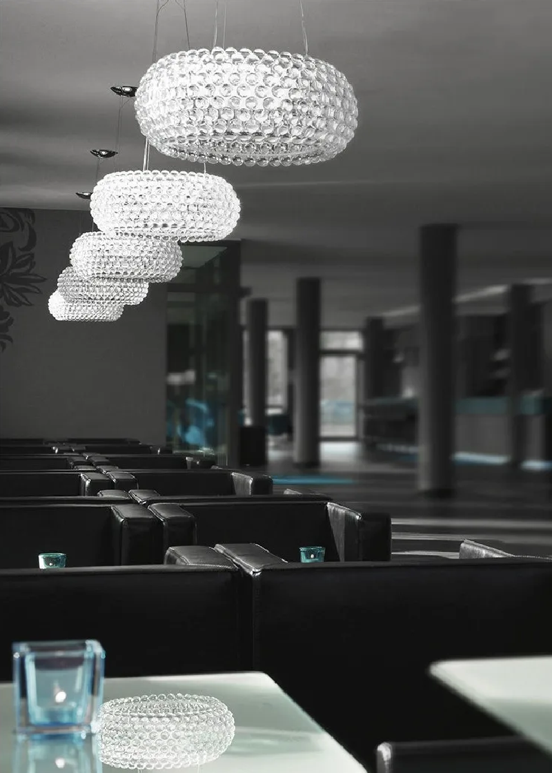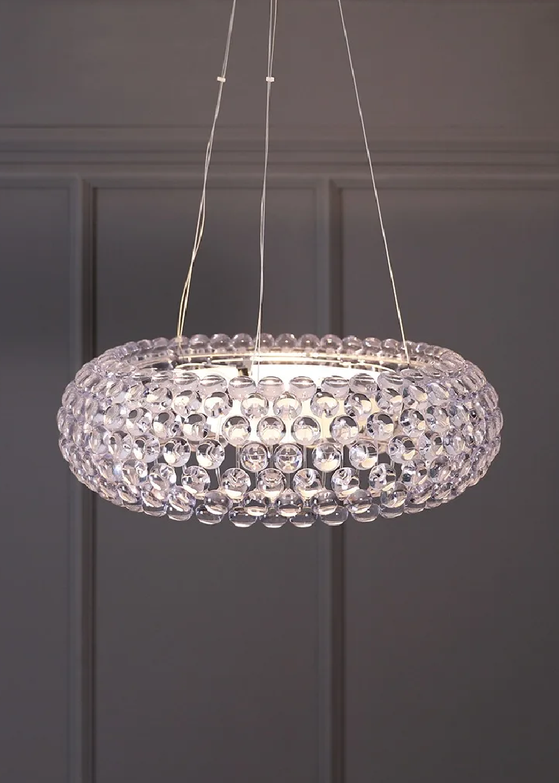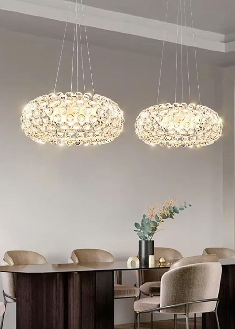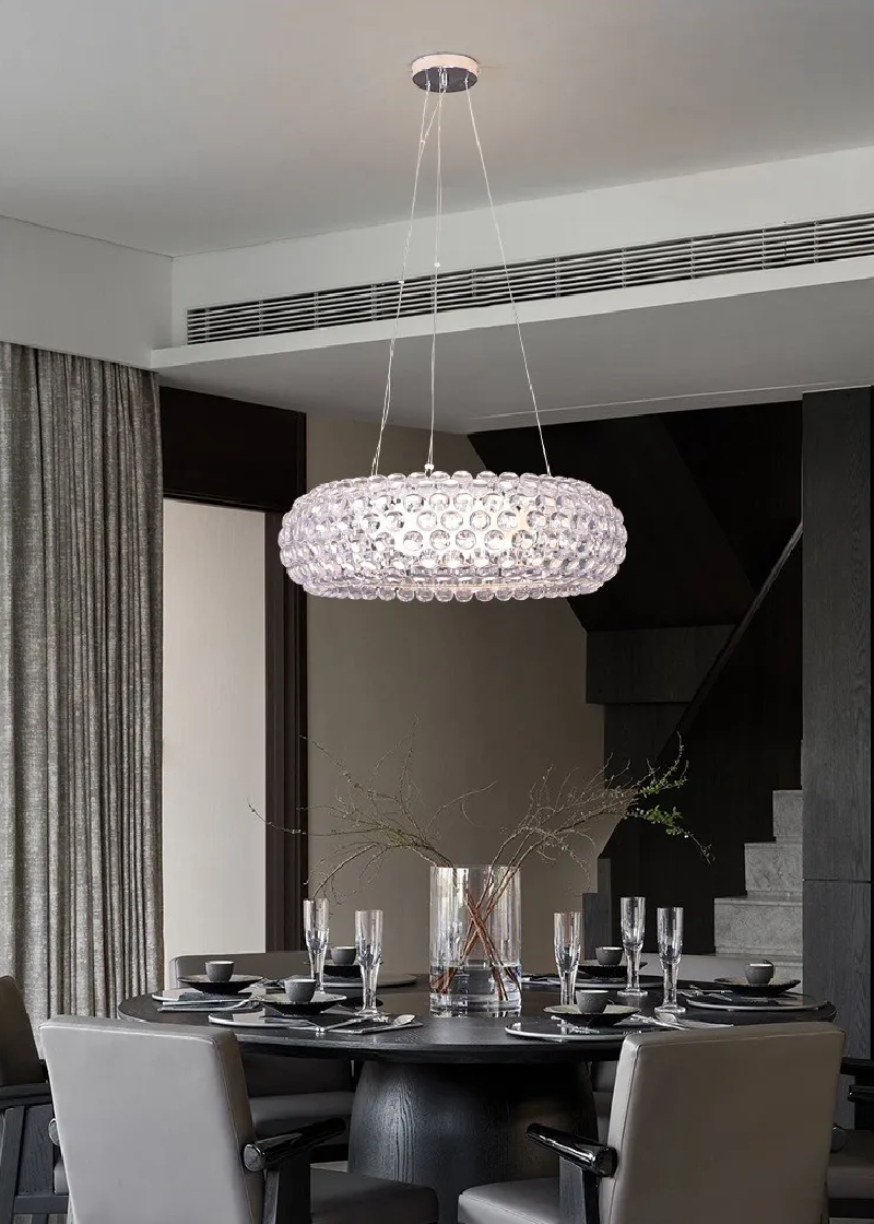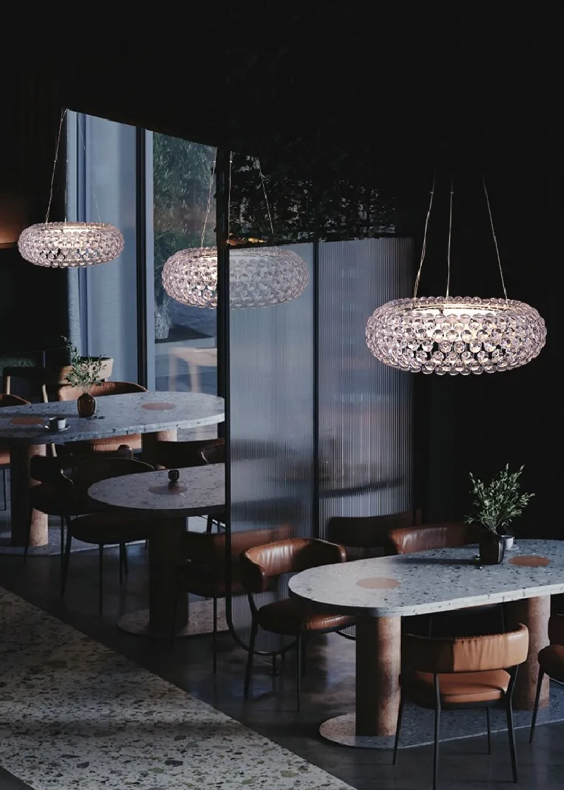 The Modern Beaded Light brings sculptural elegance and contemporary European design into any interior. Its dome-shaped silhouette is formed from dozens of precision-molded acrylic spheres that refract light beautifully, creating a luminous, jewel-like glow. Available in Clear for crisp, modern brightness or Amber for warm, atmospheric radiance, this fixture enhances dining rooms, living spaces, nurseries, foyers, restaurants, lounges, and boutique hospitality settings with ease.